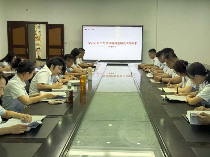 会议的第一议题,是由党支部书记韩伟领学,他带领全体党员重温了习近平总书记回信勉励全国特岗教师代表的重要内容。韩伟强调,党员教师要深刻领会回信精神,牢记立德树人的根本任务,坚守教育初心与使命,为培养高素质专业人才贡献智慧和力量。