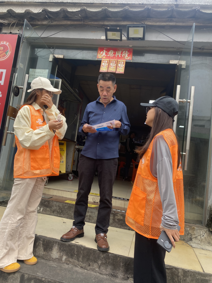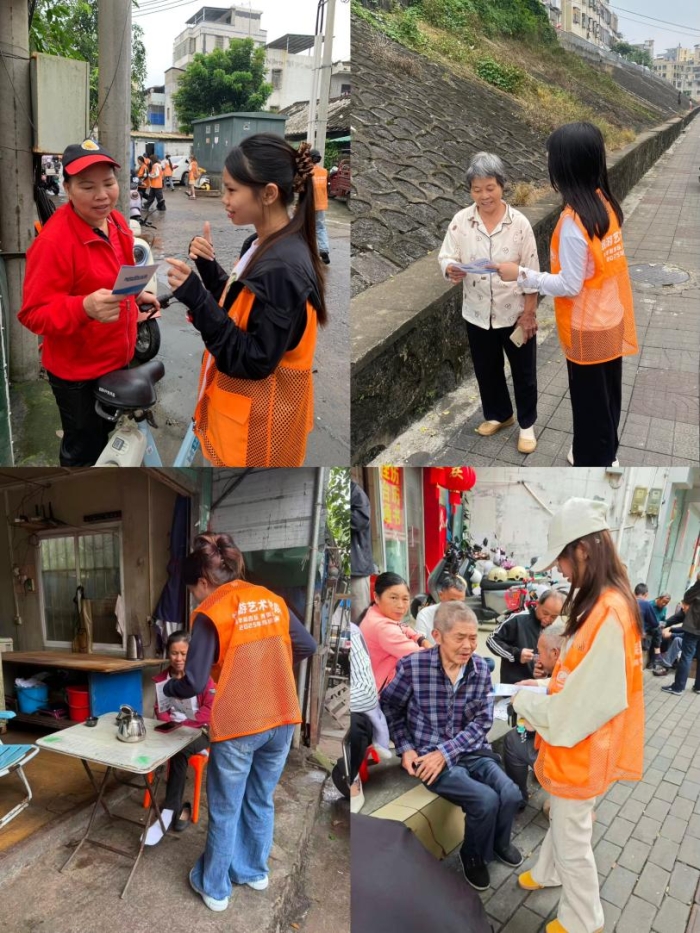 活动当日,四支宣传小组分赴上丹路街道各片区,以“温情沟通+精准讲解”打开反诈宣传新局面。无论是在居民楼下与休憩老人唠“家常”式科普,还是在街头巷尾用“身边案例”拆解诈骗话术,亦或是针对“保健品诈骗”重点提醒“‘包治百病’是噱头,高价购买必吃亏”,同学们始终以耐心、细心的态度,将反诈知识转化为老人听得懂、记得住的“生活叮嘱”。面对老人的疑问,大家结合真实案例细致解答,反复强调“遇到提钱、要密码的情况,先找子女商量,必要时拨打110”,用实际行动传递对老年群体的关怀。