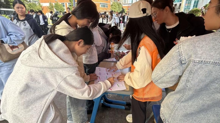 创作过程中,同学们在交流灵感、切磋技巧中拉近距离,陌生同窗因共鸣结缘,挚友伙伴因互动升温,生动诠释“全员育人”的协同效应。参与学生在集体创作中获得价值认同与情绪舒展,在分享传递中学会共情与感恩,实现了心理素养与人文情怀的双重提升,让“立德树人”在潜移默化中落地生根。