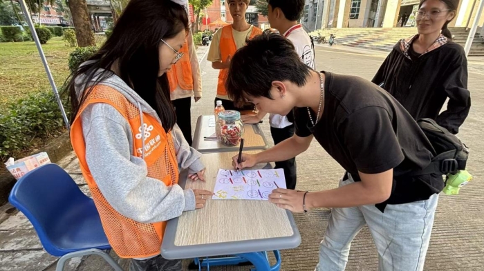 为深入推进“三全育人”综合改革,聚焦心理育人核心维度,将价值引领与心灵滋养深度融合,2025年11月25日,旅游艺术学院心理部在图书馆门前开展“共绘笑脸墙”主题活动,以艺术为桥、以温暖为翼,为学生搭建情绪表达与心灵联结的育人平台,让积极心理能量浸润校园每个角落。