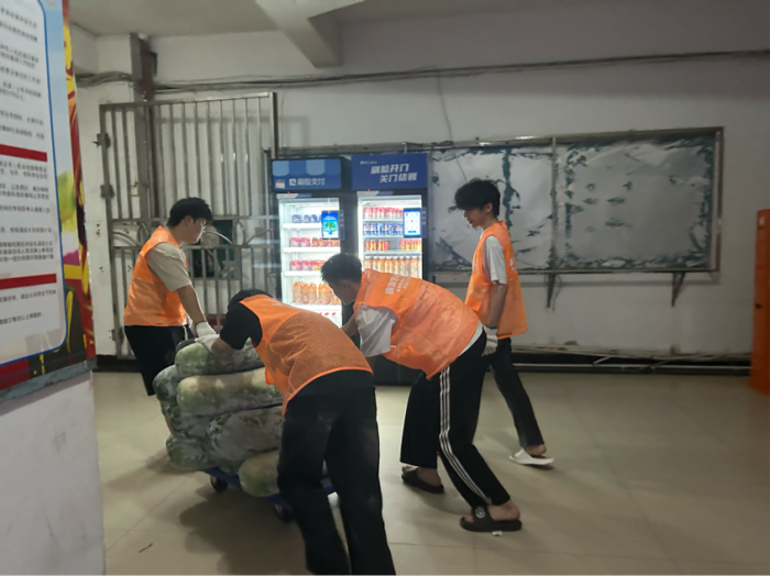 志愿服务现场,志愿者们身着统一马甲,分工明确、配合默契。从卸车转运到规整堆放,大家以扎实的作风和昂扬的状态,高效完成各项搬运任务。汗水浸湿衣衫,却挡不住大家的热情,充分展现出我院学子团结协作、担当奉献的精神风貌,用青春力量为校园服务添砖加瓦。